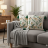 Luxury Embroidered Floral Cushion Cover – Textured Linen Decorative Sofa Pillow – Boho Farmhouse Decor for Sofa, Couch, and Living Room